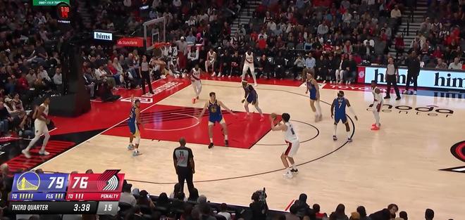 比赛最精彩的时刻之一出现在第三节,当时杨瀚森在三分线外获得机会,他毫不犹豫地出手,篮球划出一道优美弧线空心入网,这记三分帮助开拓者将比分扳平,瞬间点燃了全场观众的热情;然而,好戏还在后头,仅仅10秒之后,在勇士队的进攻回合,库里在几乎相同的位置,以一记标志性的快速三分还以颜色,这一来一往的三分对飙,让比赛的戏剧性达到了顶点,也成为全场最令人难忘的瞬间之一,这一镜头在赛后迅速传播,“杨瀚森库里互飙三分”甚至冲上了热搜榜,引发了球迷们的热烈讨论
